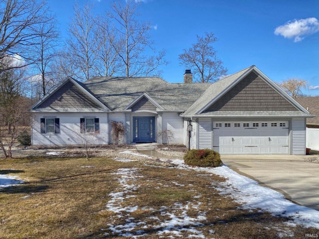 Beautiful lakefront home built by Bob Buescher Homes. Open concept with quality workmanship throughout. Nice size great room with fireplace & tall ceilings, floor to ceiling windows in both great room & dining room. Kitchen consists of solid surface countertops & breakfast bar, cabinets have pull out drawers, all kitchen appliances remain, 2 nice size bedrooms & 2 full baths, walk-in closets, den, home has storage galore. Screened-in porch & covered patio, oversized 2 car heated garage, all sitting on 0.9200 acre, irrigation system installed, great lake frontage. Wilson Lake is approximately 38.00 acres, great fishing lake known for Bluegill, Bass, Crappie & Catfish. Conveniently located 5 miles from Columbia City, 15 minutes to Warsaw, 30 minutes from Fort Wayne.