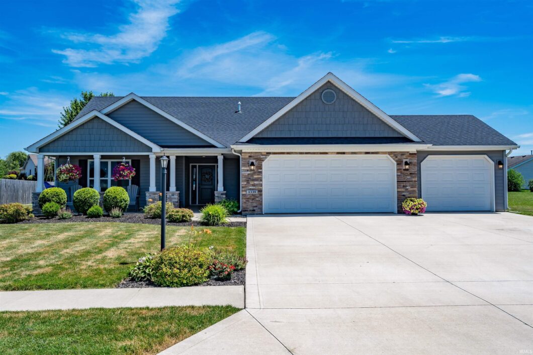 Hello gorgeous! Magnificent move-in ready ranch boasting open concept split bedroom layout with vaulted great room & big beautiful back yard—awaiting summer time cookouts & cold drinks! Located in peaceful Lincoln Pointe subdivision not far off US-30 on eastern edge of Columbia City, this 3 bedroom, 2 full bath home is sure to charm from moment you arrive! Built in 2016 by Ideal Builders, it’s been well maintained from outside in with obvious pride of ownership. Elegant & aesthetically pleasing exterior has mix of vinyl siding, shake & stone facade with professional landscaping & inviting covered front porch marked by columns—fantastic spot to socialize with friends or kick back & watch the neighborhood roll by. Attached 3 car garage includes garage door openers & wireless keypad for easy entry. Front door with twin sidelights opens to bright & welcoming atmosphere complemented by neutral color palette with white trim—the perfect blank canvas to your own personal style! The foyer has a coat closet that connects to generous main living room on carpet with soaring chamfer ceiling & scenic back yard views. Living is open to eat-in kitchen with modern lighting elements. Excellent for entertaining, central island with bar height seating is sure to be a popular gathering point. Chef’s delight kitchen has everything you need with abundant custom hickory cabinets, tile backsplash, stainless steel appliances plus HUGE corner walk-in pantry. Enjoy meals with a view from sliding doors to walk-out patio in dining nook. Large primary bedroom has huge walk-in closet & en suite bath with 5’ walk-in shower & high-rise elongated commode. Bedrooms 2 & 3 are both comfortably sized with ample storage throughout. Sizable laundry room next to the primary bedroom & main shared bath with tub/shower combo is in hallway with the other bedrooms. Other features to note: rounded drywall corners as well as wide painted pine base & casing trim; 95% efficient Trane gas furnace & central air conditioning with programmable thermostat. Spectacular back patio overlooks expansive yard with private feel due to adjacent vacant lot & neighboring fences—plenty of room for all kinds of outdoor fun & activities! Patio is oversized with space for dining al fresco, grilling & chilling or possible fire table surrounded by lovely flowers. Easy access to nearby shopping, dining & groceries & only 30 min from both Fort Wayne & Warsaw for additional options. Don’t let this one slip away!