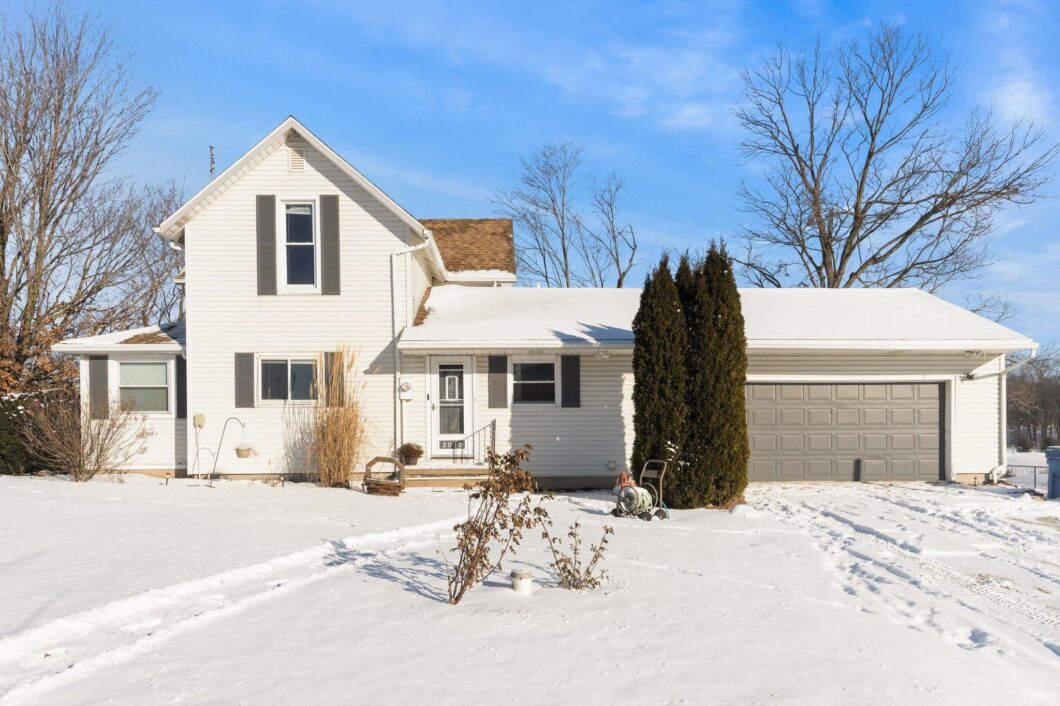 Adorable farmhouse just two miles north of town! Home sits on 2 acres with a historic red barn, partially fenced in yard, and spacious open area for a garden! Big ticket items that have been updated include: new 5 inch well in 2024, new septic in 2019, new water softener with smart leak detector in 2024, new dishwasher, and new smart garage door opener in 2022. Windows, wiring, and siding were replaced by a previous owner within the last 15 years. Inside the home offers a spacious open layout with big rooms. The kitchen has a large island with bar seating and opens up into the dining room and living room. The living room has an electric fireplace and sliding door to the backyard. The main level also offers 2 bedrooms, a humongous bathroom, and a designated laundry room/mudroom off the garage. Lastly, the upstairs offers 2 additional bedrooms and a 2nd full bathroom. This home has so much to offer at an amazing price for the country, be sure to check it out!
