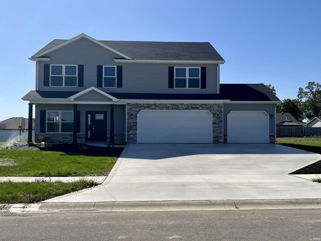 ***Substantial Price Improvement***Construction is now complete on this exceptional family home. One of Ideal Builder’s newest floorplans, this two-story Kaden features 4 bedrooms, 2.5 baths, a great room and a flex room, upper level loft, and over 2400 square feet of living space. Enter into the home and the first thing you’ll see in the spacious flex room. You name your purpose for this room; would make a great second living area or formal dining room. 9ft ceilings throughout the main level. Wonderful u-shaped kitchen with upgraded hickory cabinetry, angled upper corner cabinet, kitchen island, and premium countertops. Large corner walk-in pantry. Quartz single bowl drop in kitchen sink with upgraded spot resistant stainless pull-down kitchen faucet. Stainless steel microwave and dishwasher included with sale. Half bath centrally located on the main level. Nice size dining area with Andersen slider door stepping out onto the concrete patio. Plenty of space in the great room with triple Andersen windows. 3-car attached garage with overhead garage door opener for 2-car garage and 3rd bay, as well as numerical keypad. Primary suite located on the upper level and has a large walk-in closet, private full bath with 5′ walk-in shower with rain shower head, extra tall vanity with premium countertops, and 6′ wide bathroom linen closet. 3 additional bedrooms are located on the upper level with bedroom #2 also having a walk-in closet. 2nd full bath located on the upper level and has a door separating the toilet and shower from the vanity area. Large laundry room centrally located on the upper level and has its own linen closet. There is also a spacious loft on the upper level that can be used for a variety of purposes. Just some of the additional upgrades in this home include 2 ceiling fans (in great room and primary bedroom), rounded drywall corners, interior and exterior lighting, front door and front door sidelite, pendant lights above kitchen island, LVP flooring with quarter round, brushed nickel bath fixtures, and upgraded trim. This home is located in Lincoln Pointe which has a great location! Less than 5 miles to lots of shopping and restaurants and is also a great central location between Fort Wayne and Warsaw. Another perk to this home is the option to belong to the monthly association program eliminating the need for the homeowner to take of the lawn maintenance and snow removal.