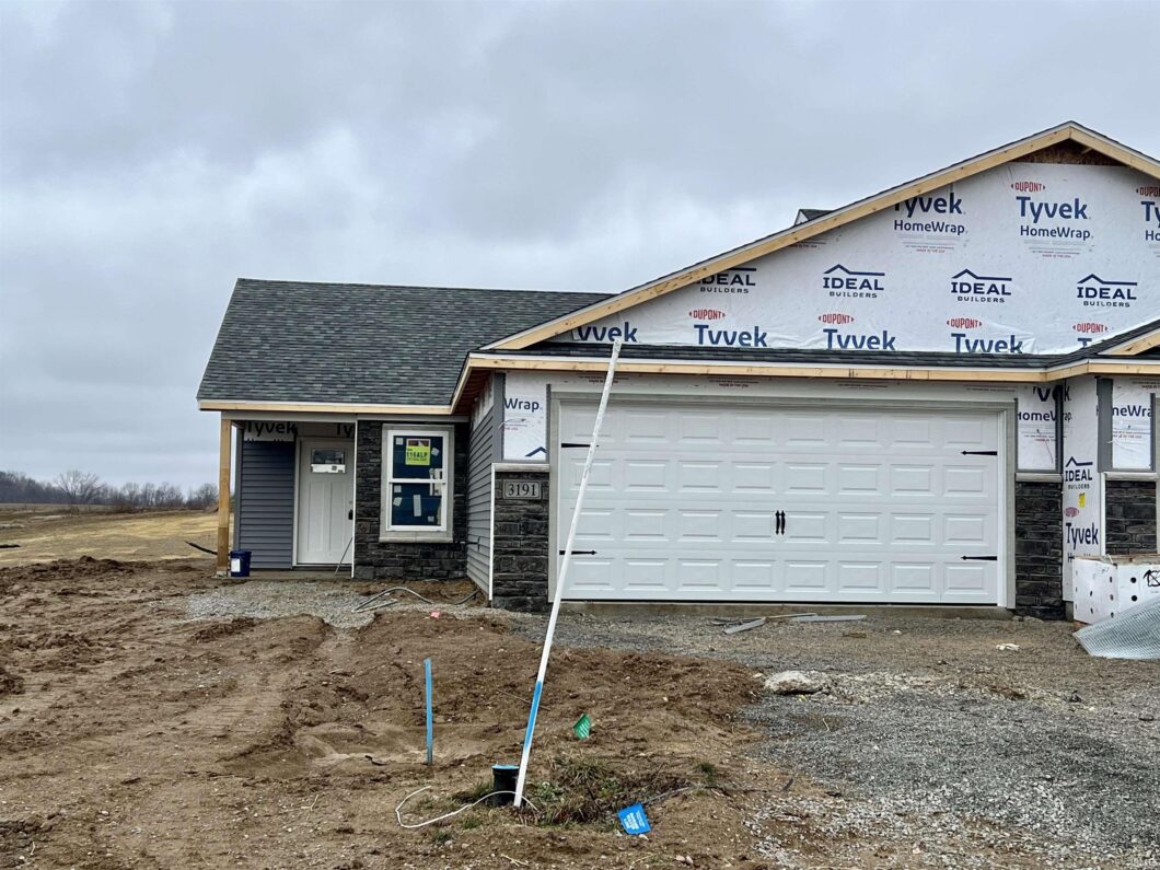 Brand new villa home under construction in wonderful Lincoln Pointe. This Oakhurst II floorplan showcases 2 bedrooms, 2 full baths, and 1201 square feet of living space. Foyer entry with coat closet leads way to the great room with soaring chamfer ceiling, triple window, and Andersen slider door that steps out onto the concrete patio. Kitchen features upgraded white custom oak cabinetry, tall angled upper corner cabinet, stainless steel microwave and dishwasher, extra deep kitchen sink, and spot resistant pull-down kitchen faucet. Laundry room located off of kitchen and has 36″ matching oak cabinet with hanging rod. Primary bedroom has its own en-suite with cultured marble vanity top, 5′ walk-in shower, and high-rise elongated toilet. Second full bath has tub/shower combination, cultured marble vanity top, and high-rise elongated toilet. Both bathrooms have upgraded brushed nickel fixtures. Bedroom2 is also nice in size and has its own walk-in closet. Andersen windows throughout home as well as rounded drywall corners. Locking vinyl plank flooring as well as quarter round in all areas except bedrooms and bedroom closets. Upgraded interior and exterior lighting as well as architectural roof shingles. 2 car attached garage is finished and has 30″pull-down staircase to attic, wireless keypad, and dedicated freezer outlet. 95% efficient gas furnace and central air conditioning. Fresh air ventilation system which includes Honeywell Vision Pro 8000Programmable Thermostat, Vision Pro Module, and Honeywell EARD6 Ventilation Damper. Landscaping package included in sale and includes rough and final grading, 3 CY mulch beds, 15 shrubs (or hosta substitutes), and 2- 1 3/4″ diameter trees. Lawn maintenance and snow removal is taken care of for you for $107.00 per month, leaving you with extra time to enjoy the finer things in life. Lincoln Pointe is a wonderful rural subdivision located in Columbia City. Great central location between Fort Wayne and Warsaw.