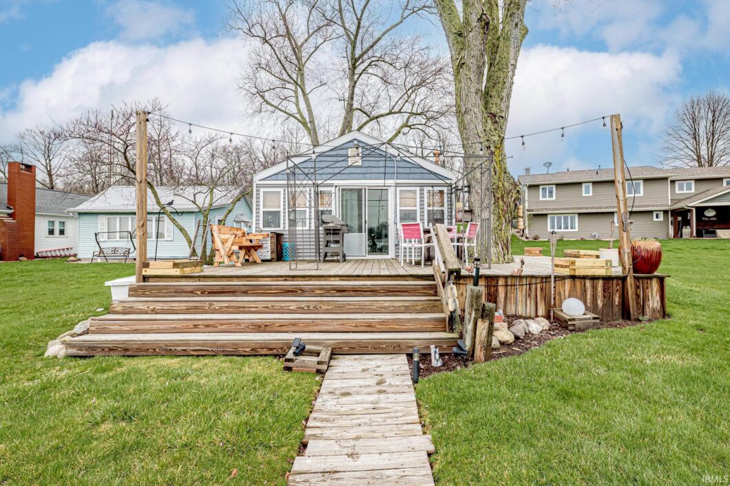 Cute 2 bedroom, 1 bath bungalow on a level 40 foot lakefront lot on an all sports lake. Home has a 2-car lofted detached garage across the street. 108 feet of pier and a large patio to enjoy the views. Gas fireplace in living room for those cold winter nights.