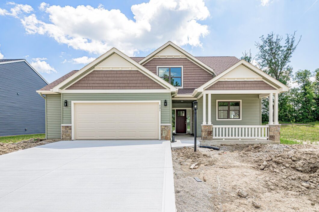 Brand New 4 bedroom 2.5 bath home in Timbers Edge. This home sits on a large lot that is partially wooded in the back. The first large bedroom is on the first floor with a double sink vanity and walk-in closet. The living room includes a fireplace and vaulted ceiling and is open to the dining area and kitchen which includes a breakfast bar. The oversized garage includes plenty of extra storage. Timbers Edge is conveniently located near the park, hospital, Blue River Trail, YMCA and shopping. Easy access to US 30, 205 and St. Rd. 9. Buyer to be responsible for installing required landscaping (1-1.5-inch caliper tree and minimum of 5 bushes in the front yard). Builder is providing a 2-10 builders warranty.