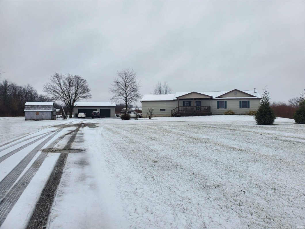 Spacious open concept ranch with cathedral ceiling and walkout basement. Home consists of 3 bedrooms, on main floor and 2 full baths, nice size kitchen with breakfast bar & large pantry, large deck to view the beautiful countryside. Basement boasts large family room, den, office & laundry room, 1 full bath, 2 car attached garage, 3 car detached garage, 12×16 shed, storage galore. All of this sitting on approximately 3 1/2 acres.